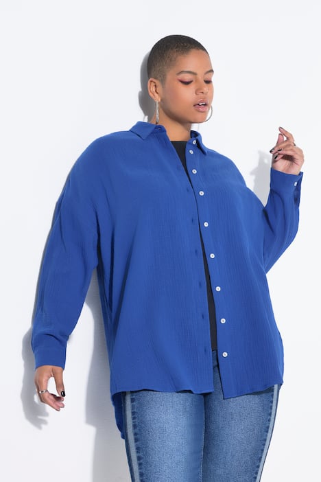 Musselin Bluse, oversized, Hemdkragen, Langarm