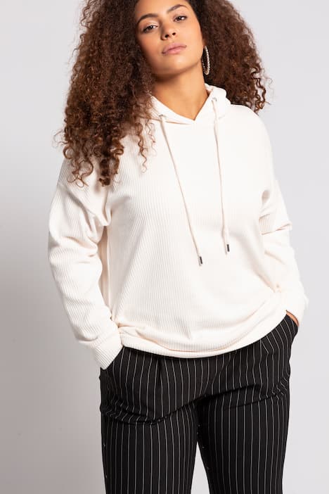 Hoodie, Cordoptik, oversized, Kapuze mit Bindeband, überschnittene Schultern, Langarm.
