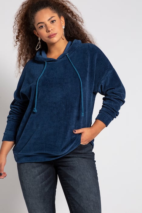Hoodie, Cordoptik, oversized, Kapuze mit Bindeband, überschnittene Schultern, Langarm.